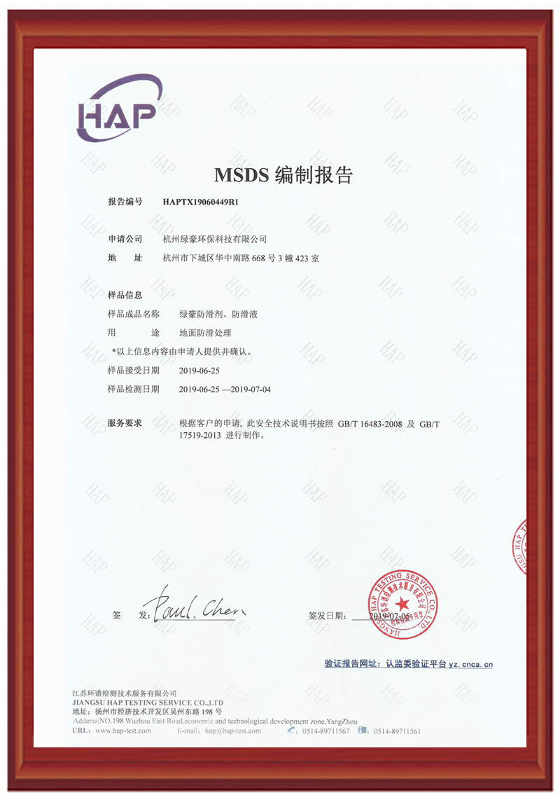 綠豪防滑劑能有效的滲入瓷磚的毛細(xì)孔內(nèi),使毛細(xì)孔變粗,在表面形成很多細(xì)小肉眼看不見的納米級凹槽,地面摩擦系數(shù)大大增加,但是不改變瓷磚外觀,表面不增加涂層,不影響打掃衛(wèi)生。