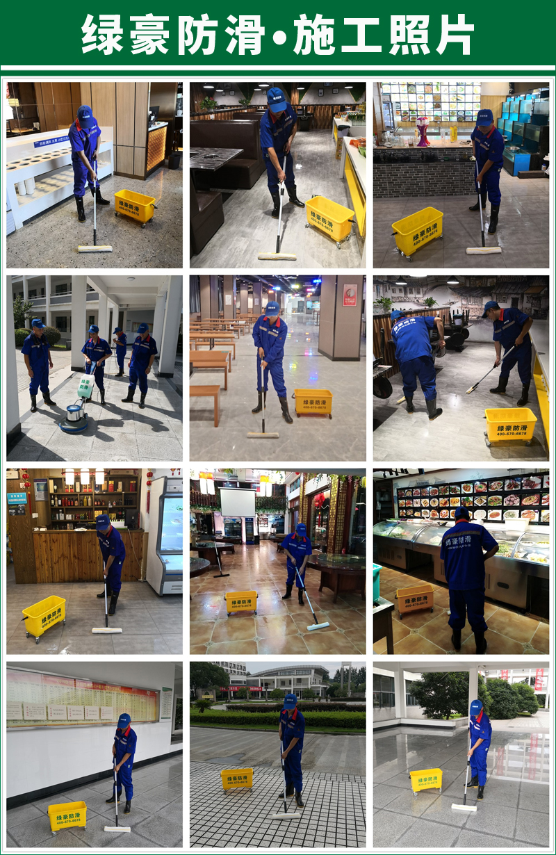 不用鋪防滑墊,不用更換地磚,針對現有地面進行處理,綠色環保無毒無害,隱形防滑,處理后表面不增加涂層,打掃衛生無影響,長久有效,已經給大量學校、醫院、養老院、飯店、酒店、企事業單位及家庭進行了地面防滑處理,受到客戶一致好評。
