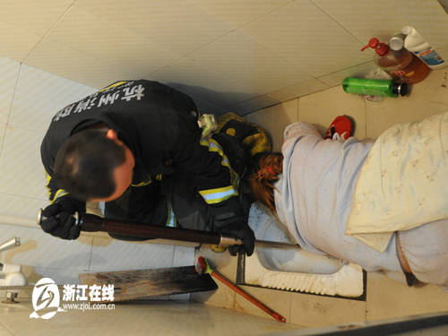 浙江在線杭州12月5日訊(記者 汪洋 通訊員 張建?。?/span>今日0時50分,杭州余杭區葛家車村一名女子手臂被卡在了便池內,消防官兵用了10多分鐘才將其手臂抽出。