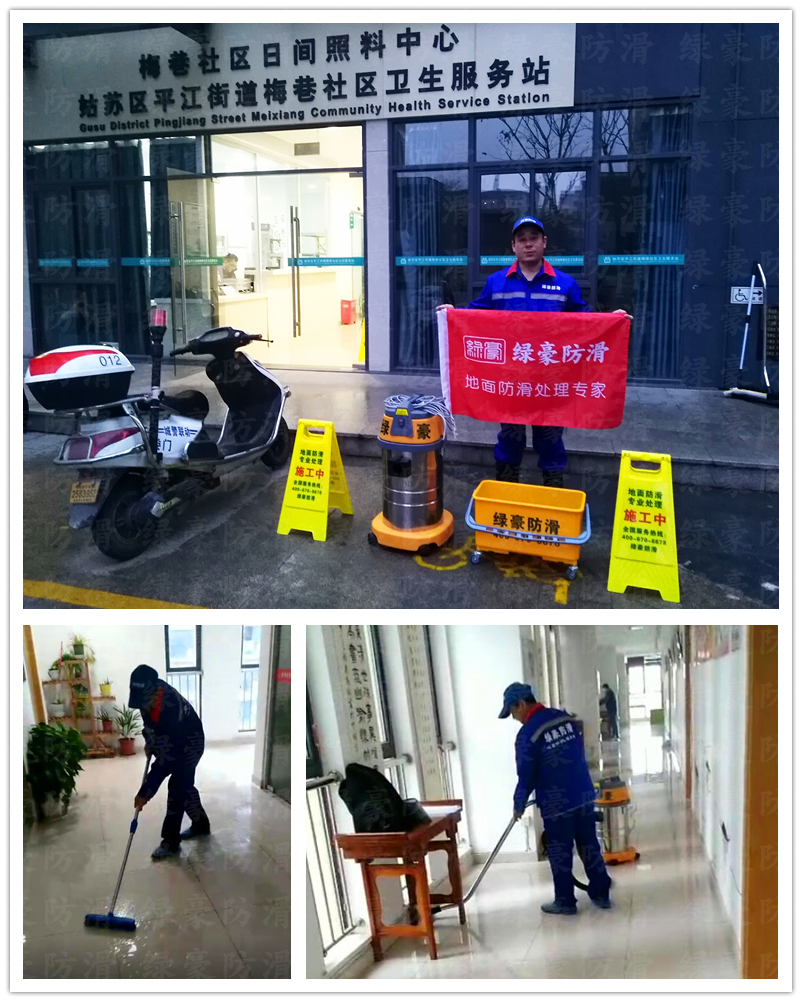 社區(qū)衛(wèi)生服務(wù)站地面防滑處理案例,綠豪地面防滑是地面防滑處理專業(yè)品牌(4006706678),主要針對瓷磚防滑處理、地面防滑處理、飯店防滑處理、學(xué)校防滑處理、醫(yī)院防滑處理,具有中國環(huán)境治理甲級資質(zhì),中國防滑行業(yè)最具影響力品牌,集科研、生產(chǎn)、銷售、服務(wù)于一體,依托浙江大學(xué)科技園技術(shù)支持,致力于人居環(huán)境安全服務(wù),專業(yè)地面防滑處理,杭州電視臺有專題報(bào)道,《錢江晚報(bào)》有新聞報(bào)道,浙江政府采購云平臺供應(yīng)商,阿里巴巴地面防滑服務(wù)商。